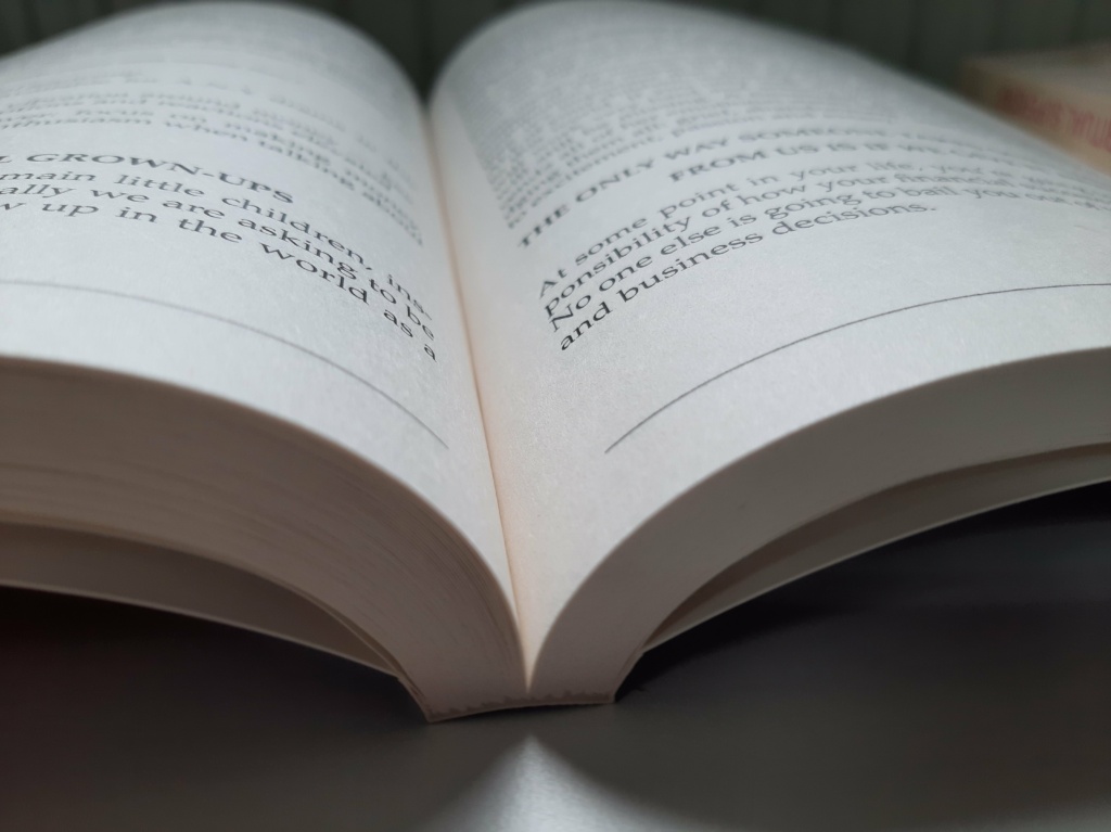 Druk książki realizowaliśmy z formatu B. W celu nadania objętości, przy zachowaniu lekkości wspólnie z Klientką dobraliśmy odpowiedni papier – creamy – który był dodatkowo spulchniony. Dzięki temu świetnie chłonie tusz drukarski a dodatkowo, dzięki niższemu niż w wypadku zupełnej bieli kontrastowi, wpływa pozytywnie na odczucia czytającego.